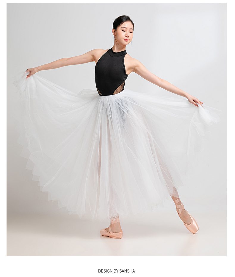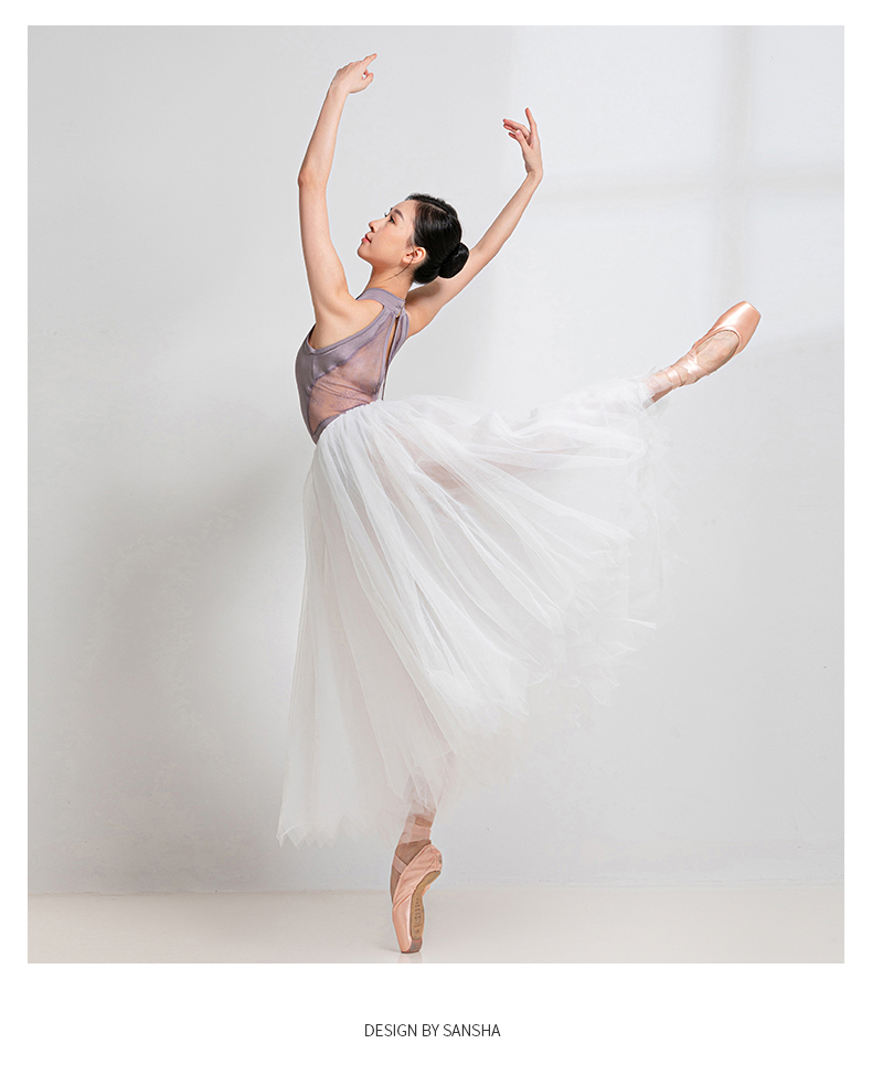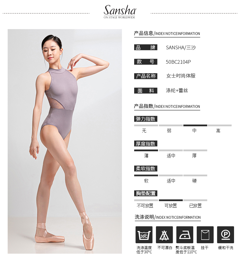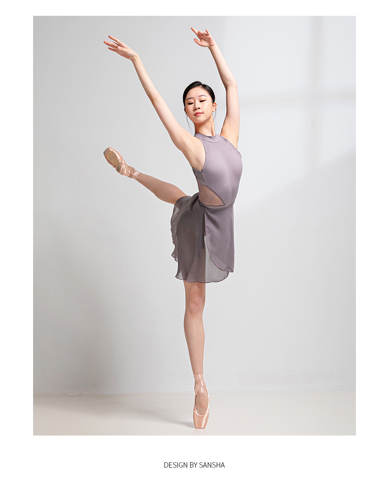 sansha 三沙芭蕾舞练功服 女成人挂脖舞蹈连体服蕾丝体操形体服