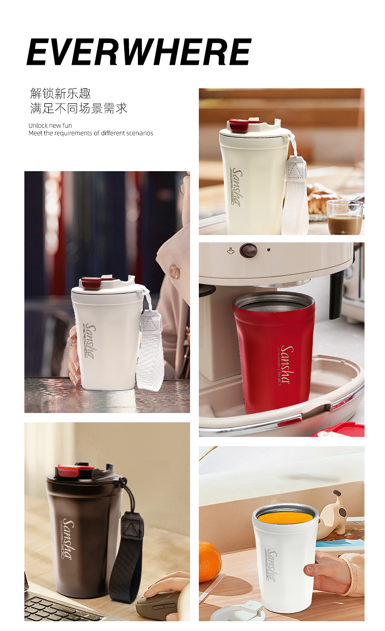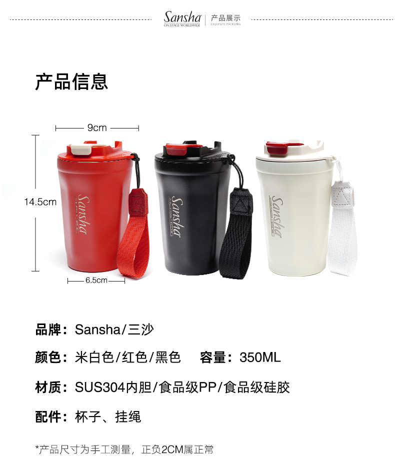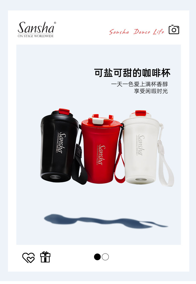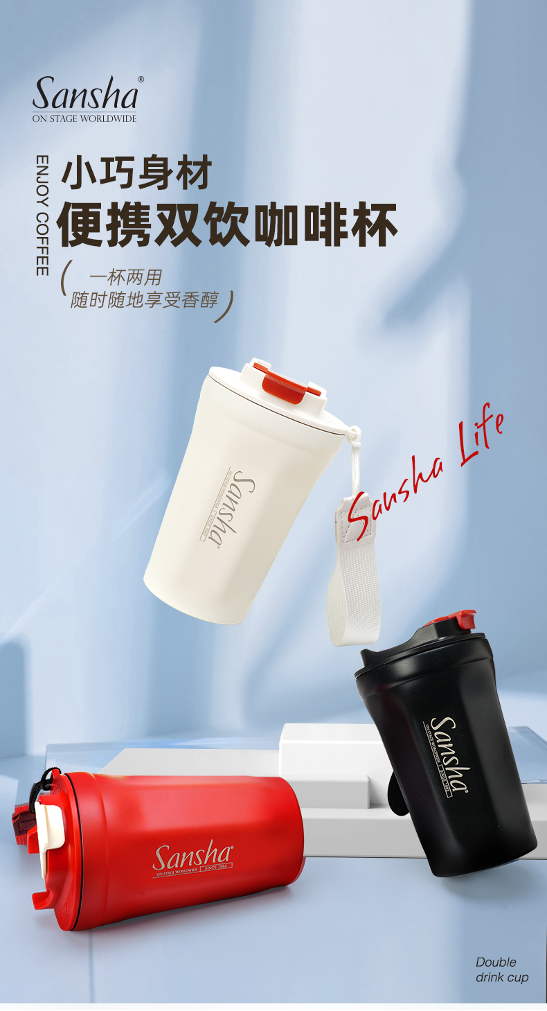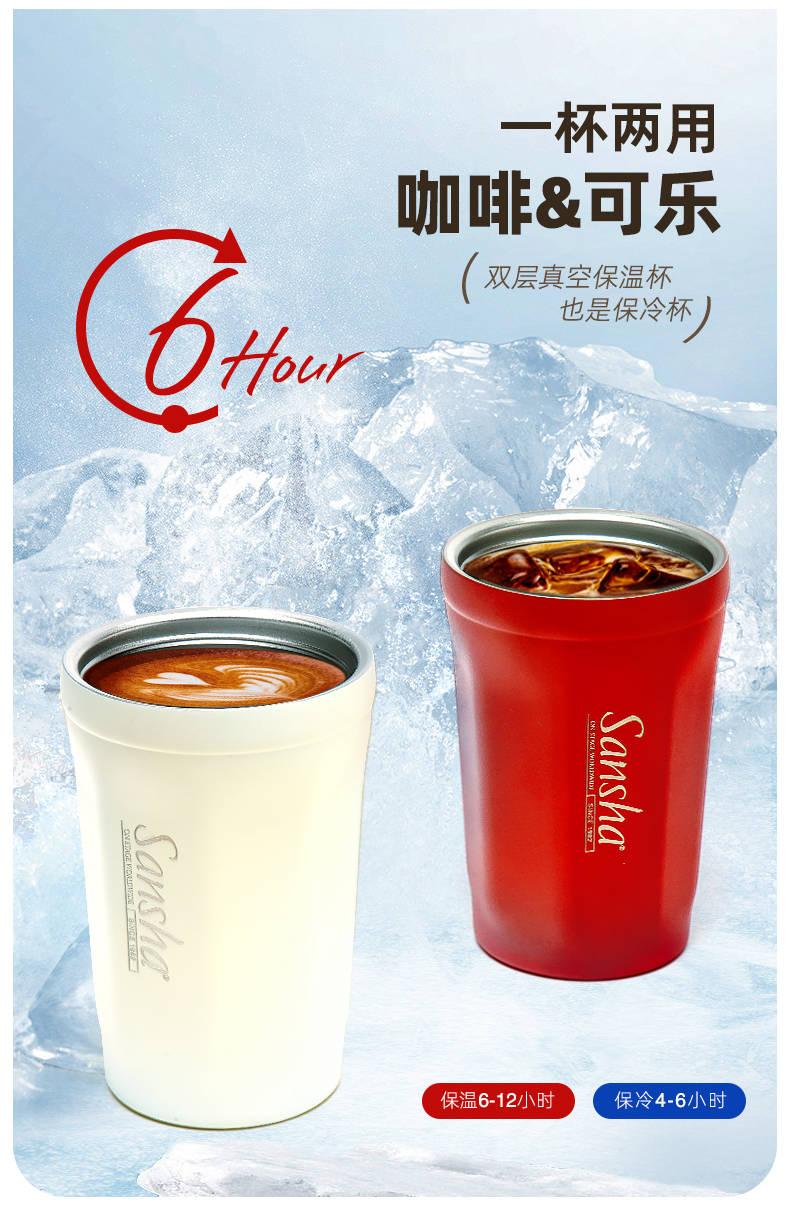sansha 三沙美式保冷咖啡杯随行杯拿铁304不锈钢保温杯便携水杯子