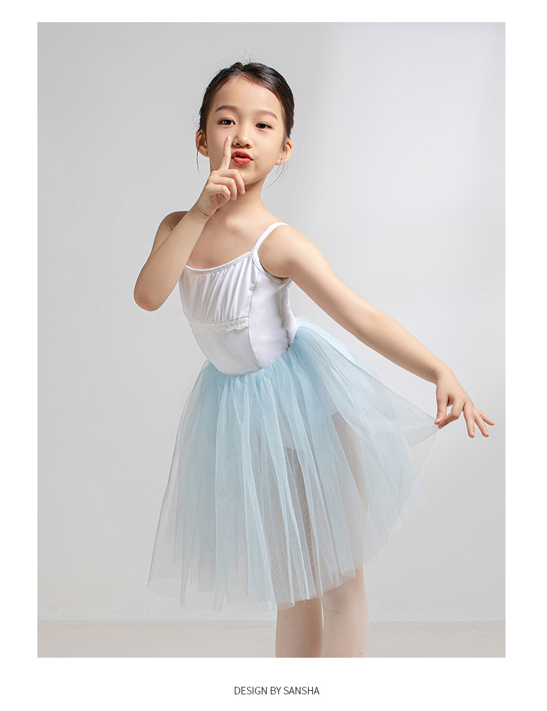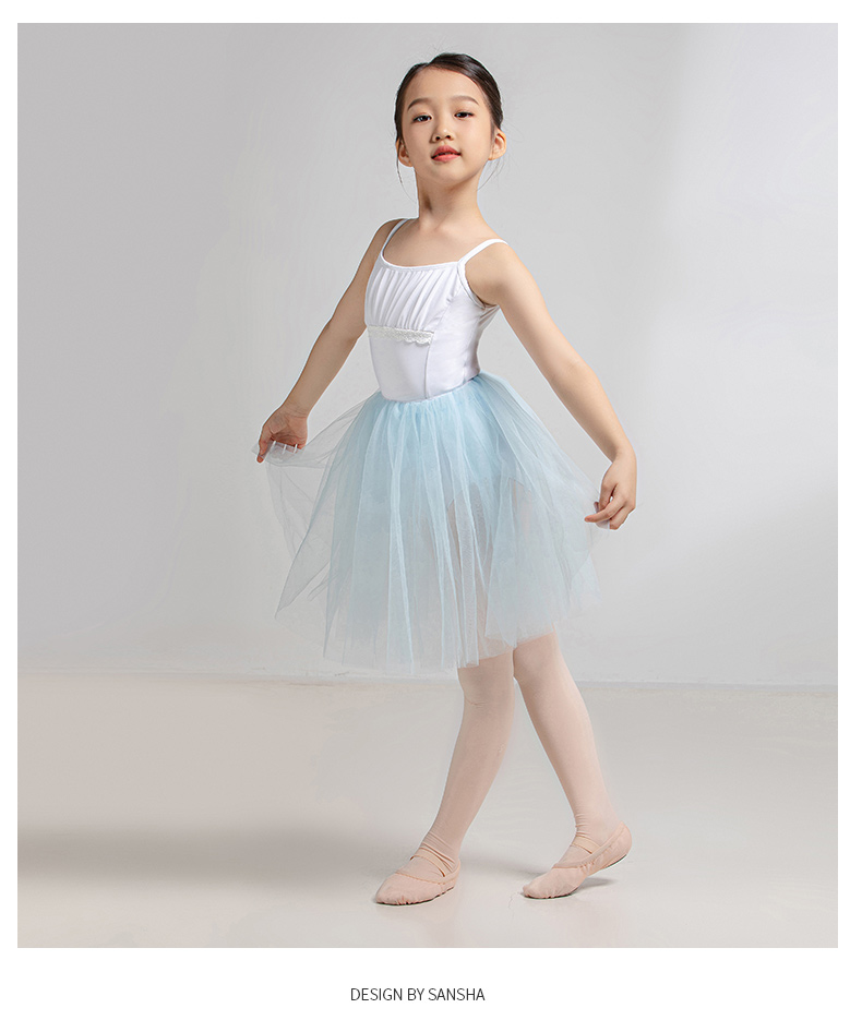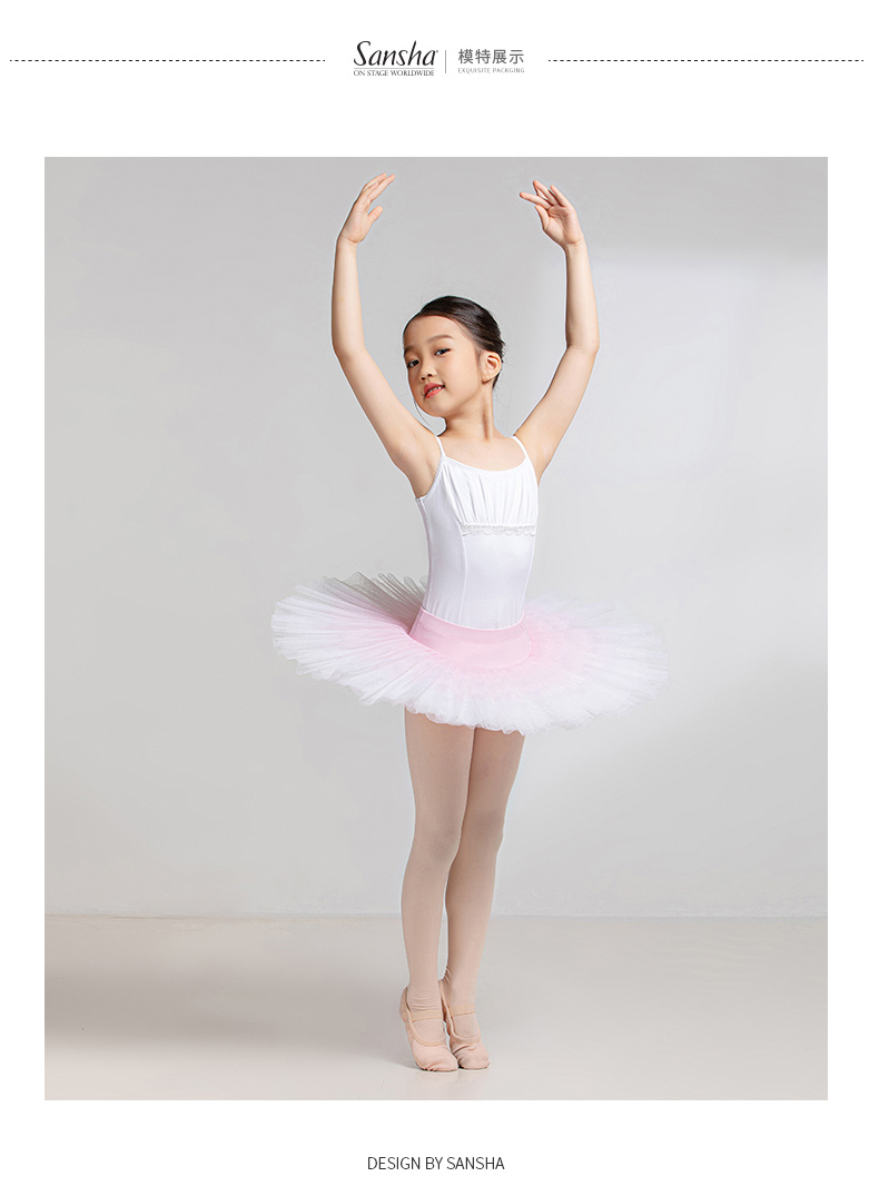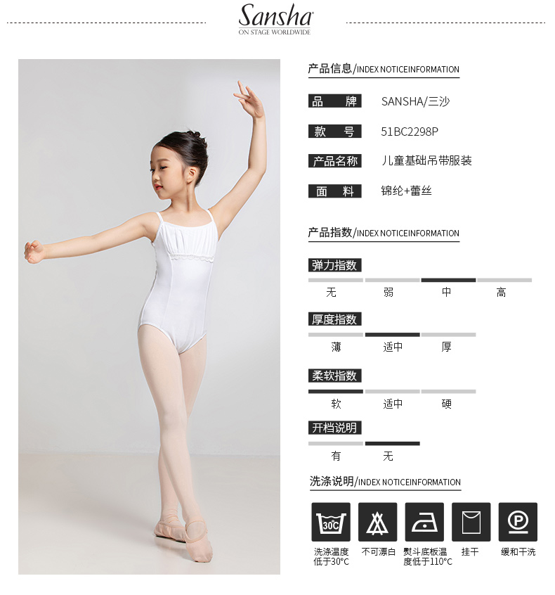 sansha 三沙儿童舞蹈服女 吊带连体服芭蕾舞练功服白色少儿体操服