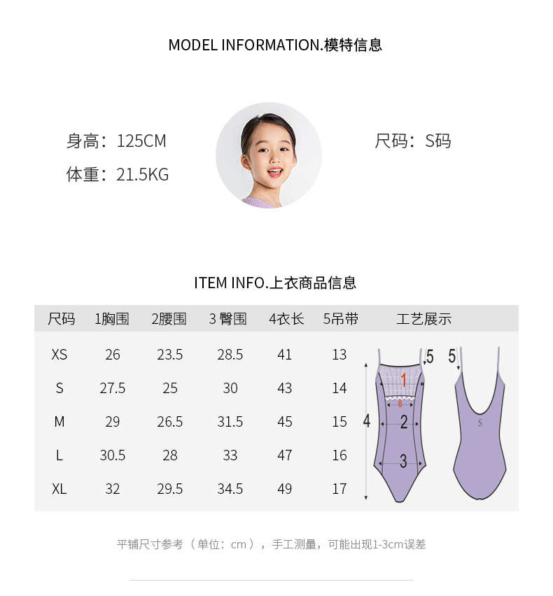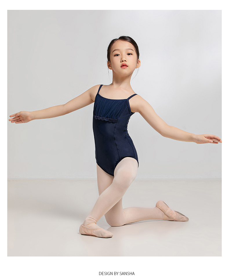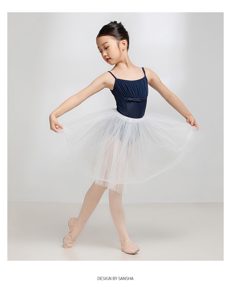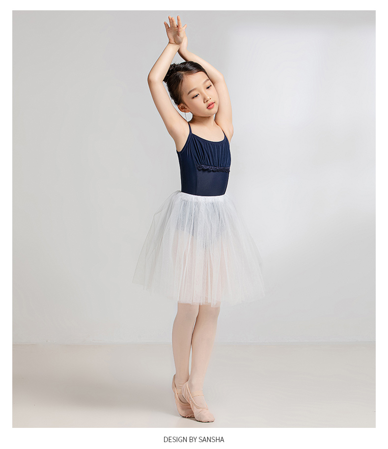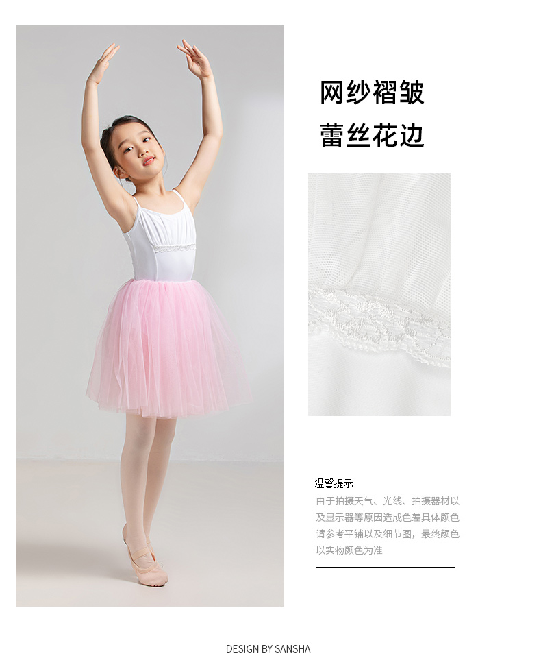 sansha 三沙儿童舞蹈服女 吊带连体服芭蕾舞练功服白色少儿体操服