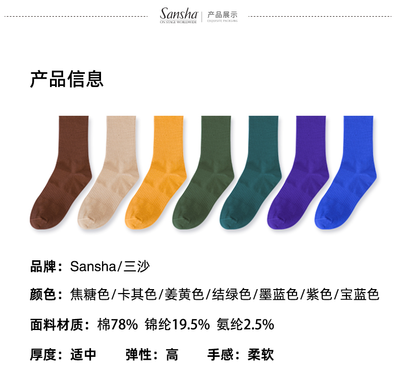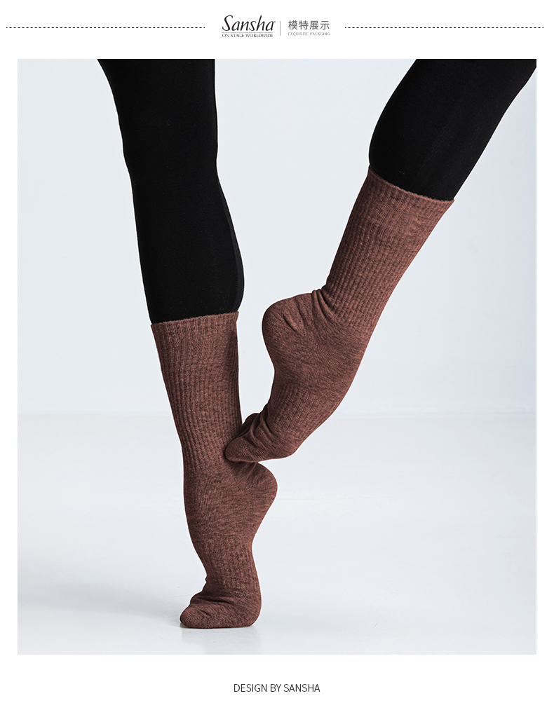 sansha 三沙现代舞袜 彩色芭蕾舞练功短袜中筒棉袜纯色长筒舞蹈袜