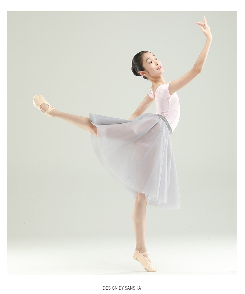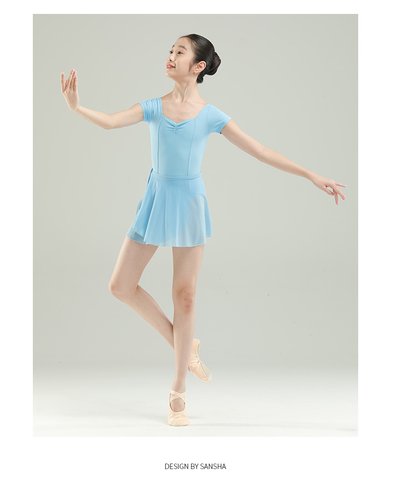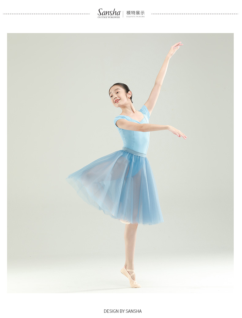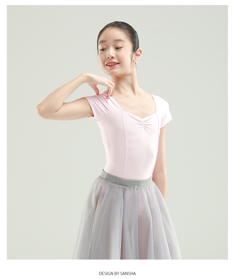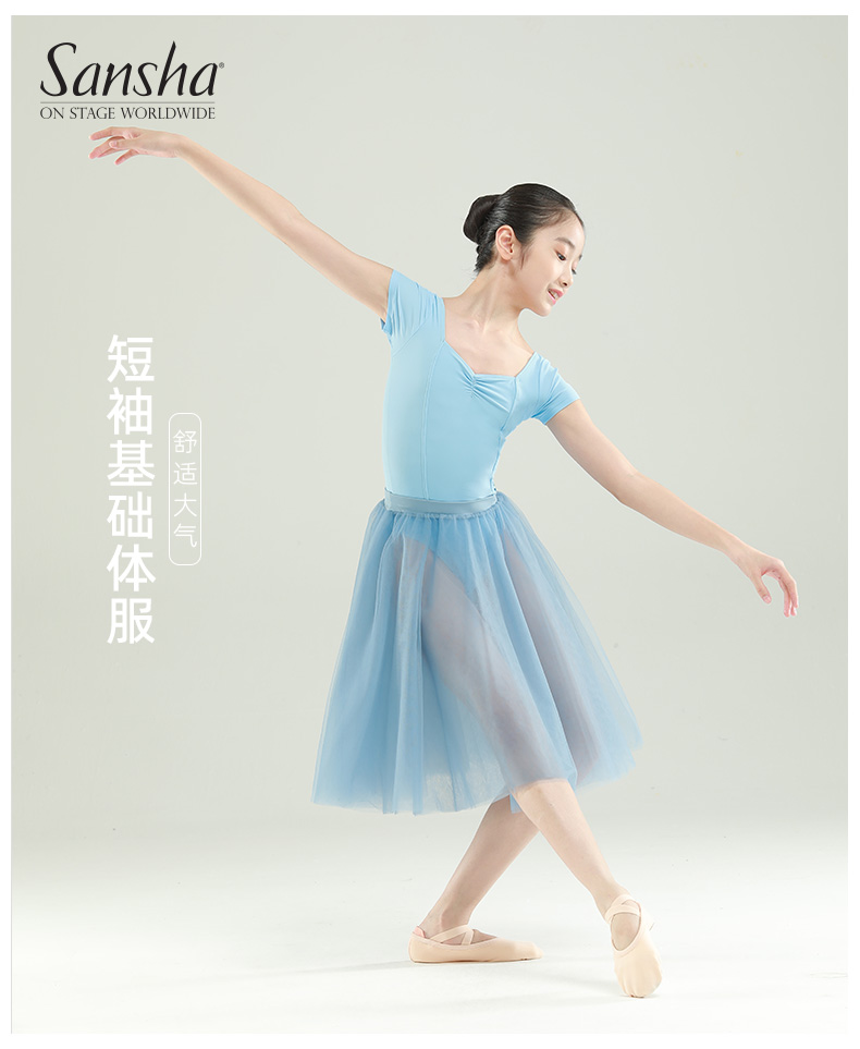 sansha 三沙少女芭蕾舞练功服 女童短袖舞蹈服高胯连体服形体服