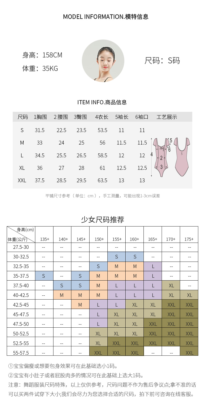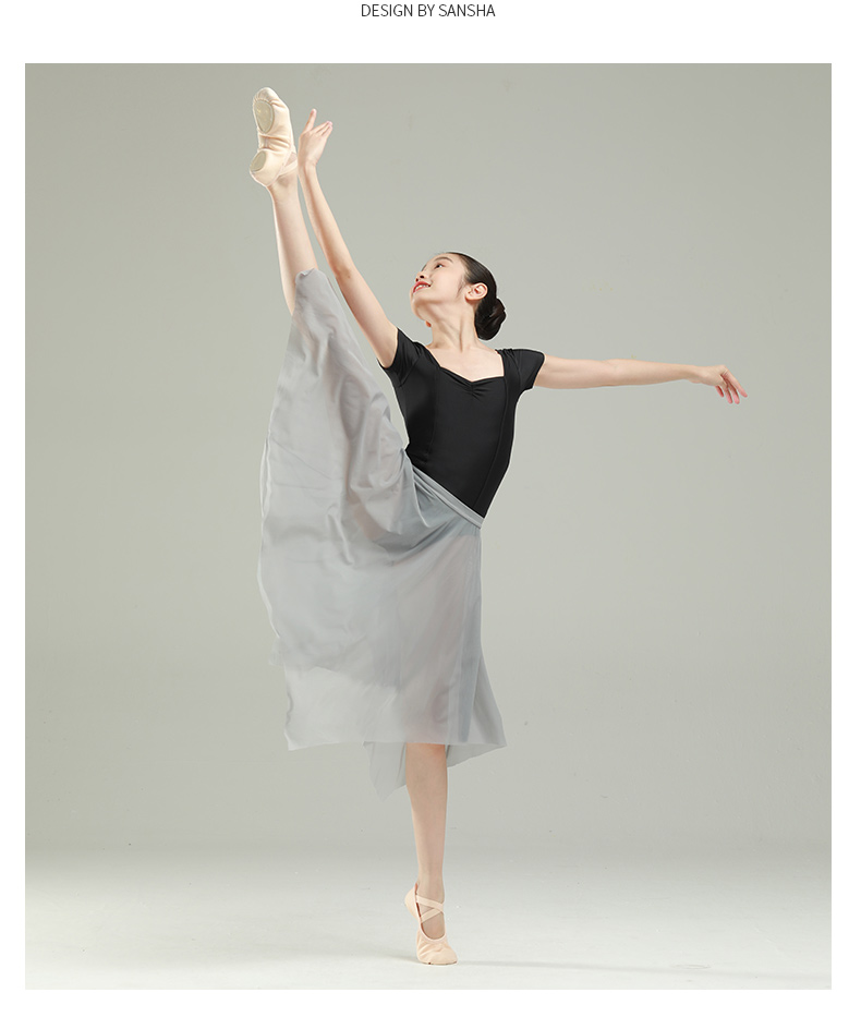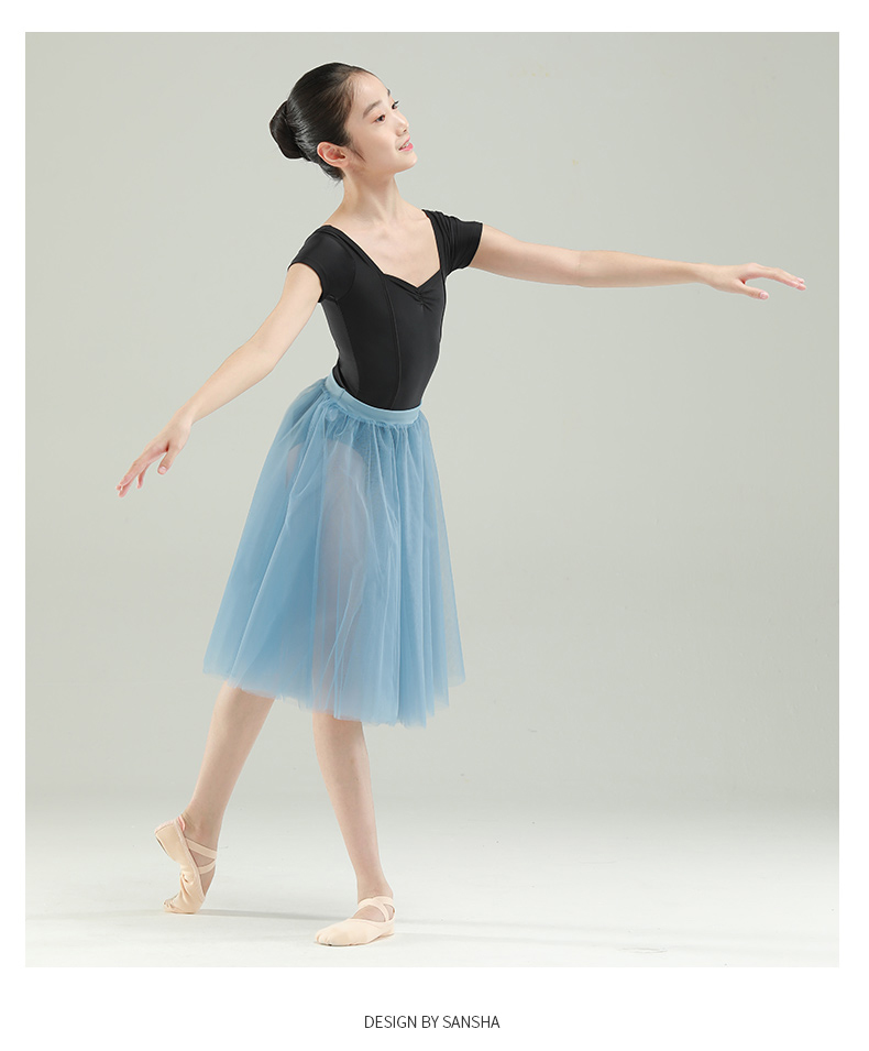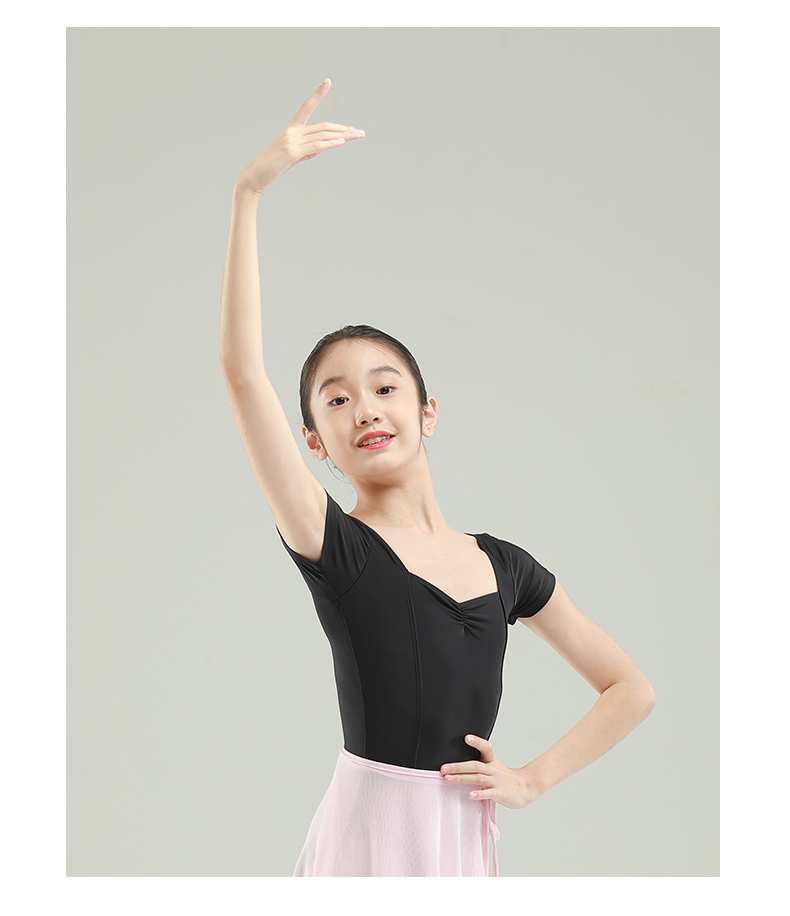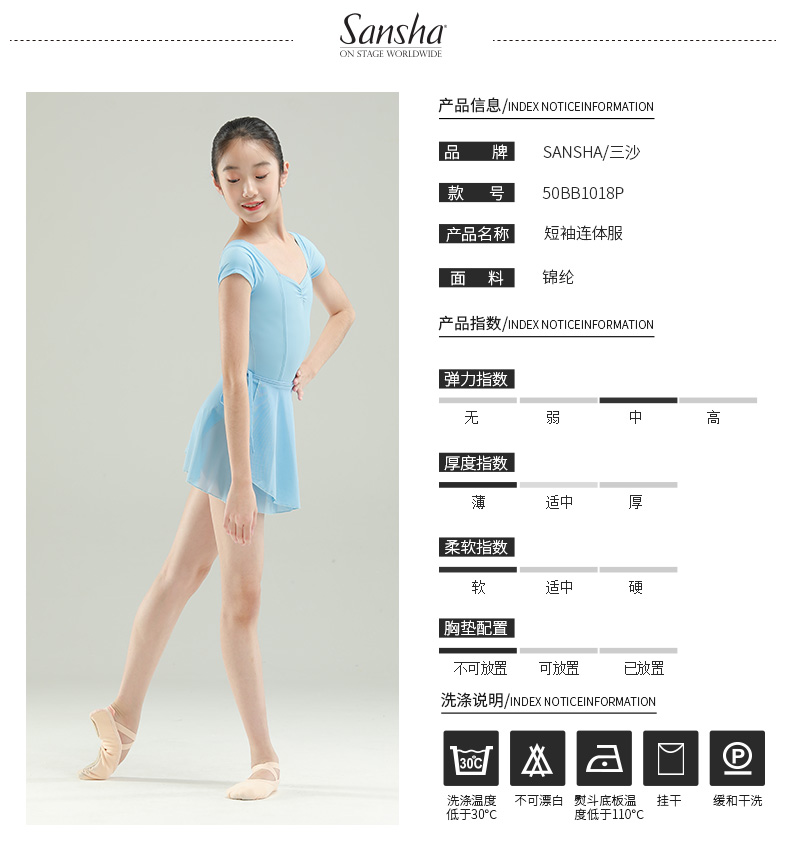 sansha 三沙少女芭蕾舞练功服 女童短袖舞蹈服高胯连体服形体服
