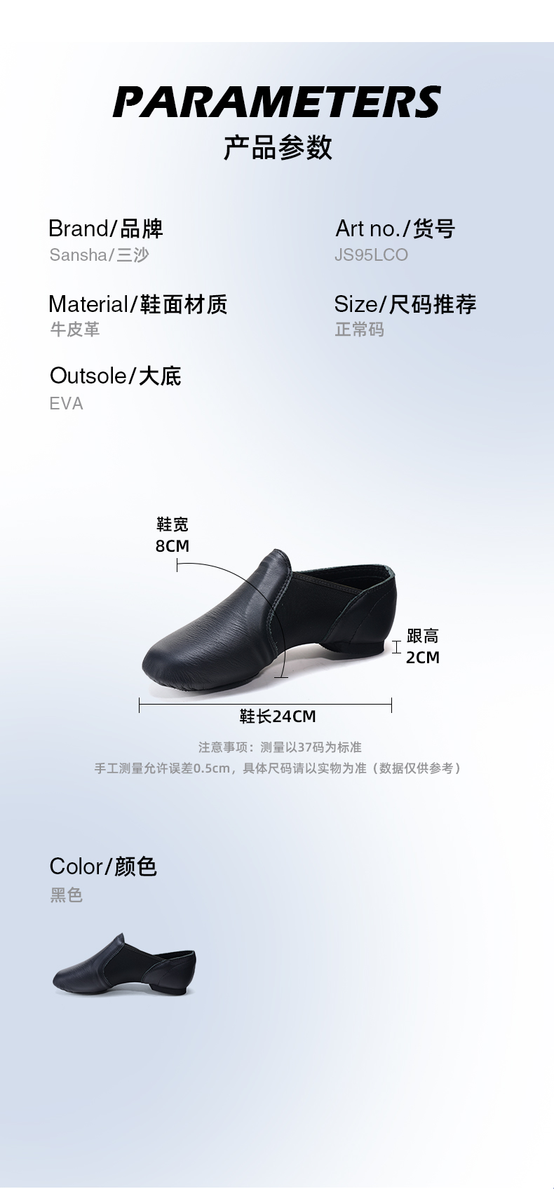 sansha 三沙爵士舞鞋 专业软底舞蹈练功鞋现代舞鞋教师鞋牛皮低跟