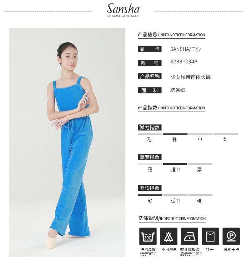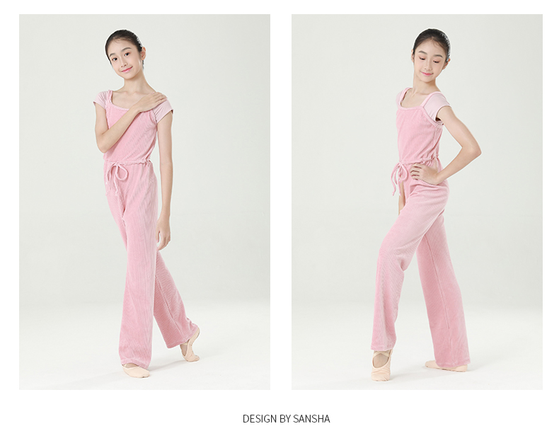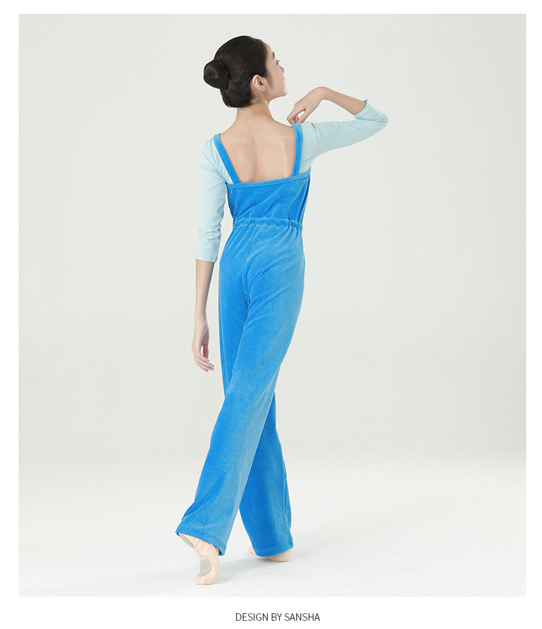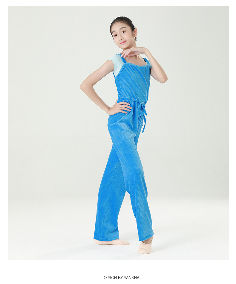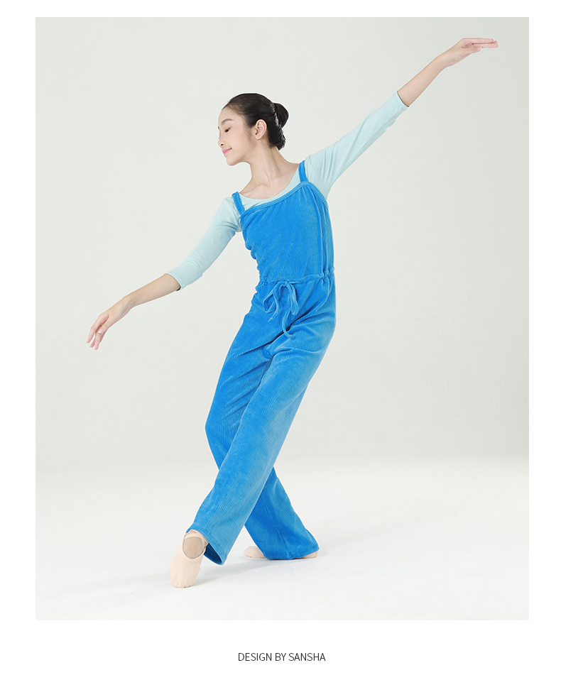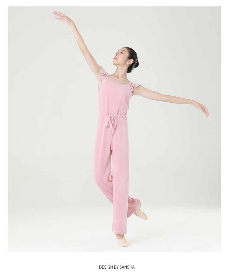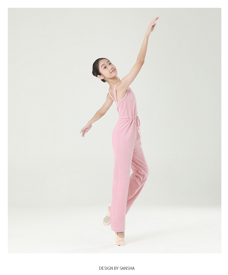 Sansha 三沙少女芭蕾舞保暖连体长裤练功吊带背心长裤竖条绒厚实