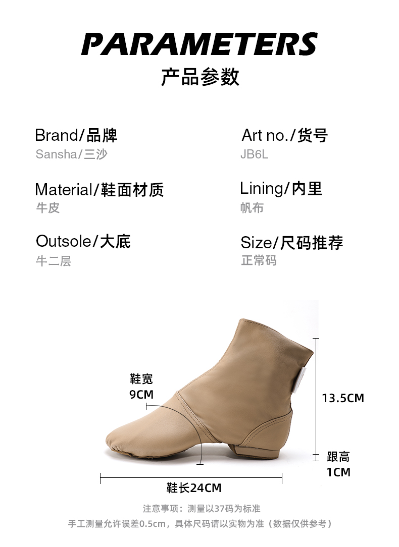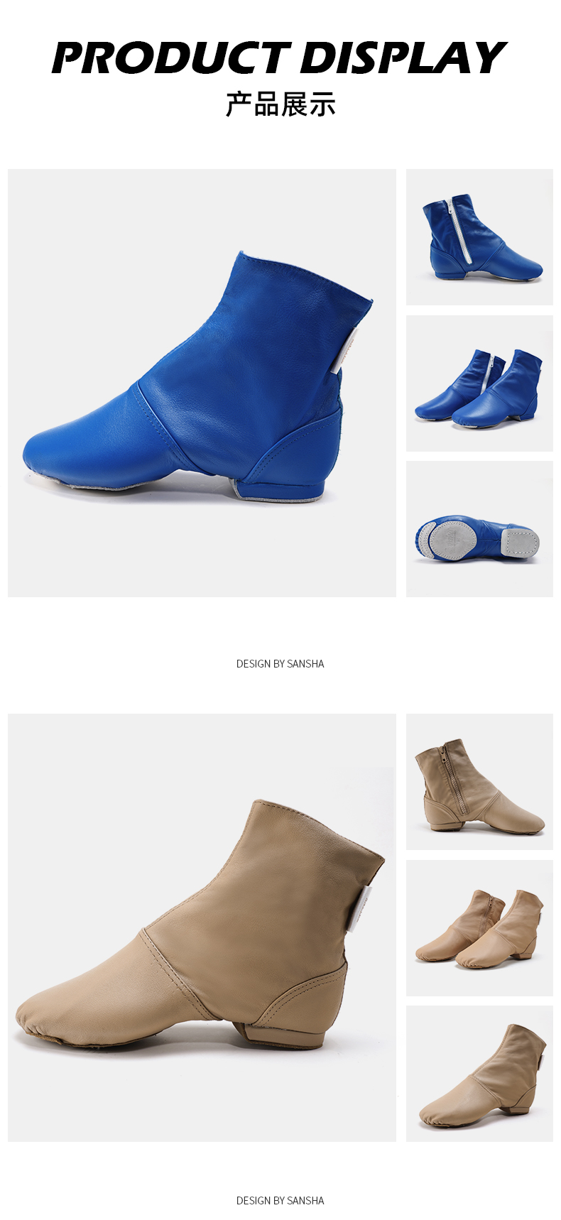 sansha 法国三沙爵士舞靴高筒拉链牛皮舞蹈鞋软皮底瑜伽现代舞鞋
