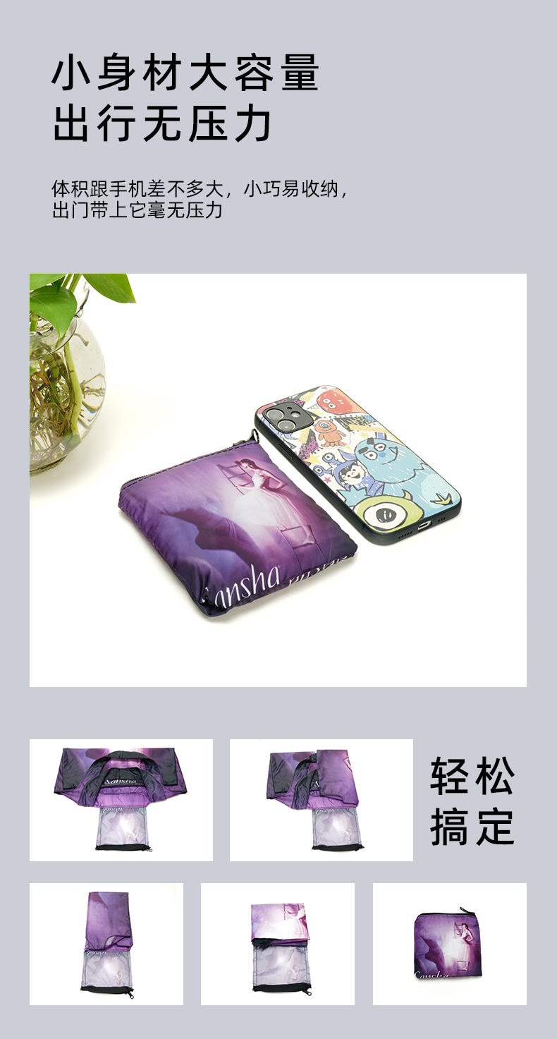 sansha 法国三沙舞蹈折叠包女 便携手提袋巨能装小包收纳袋购物袋