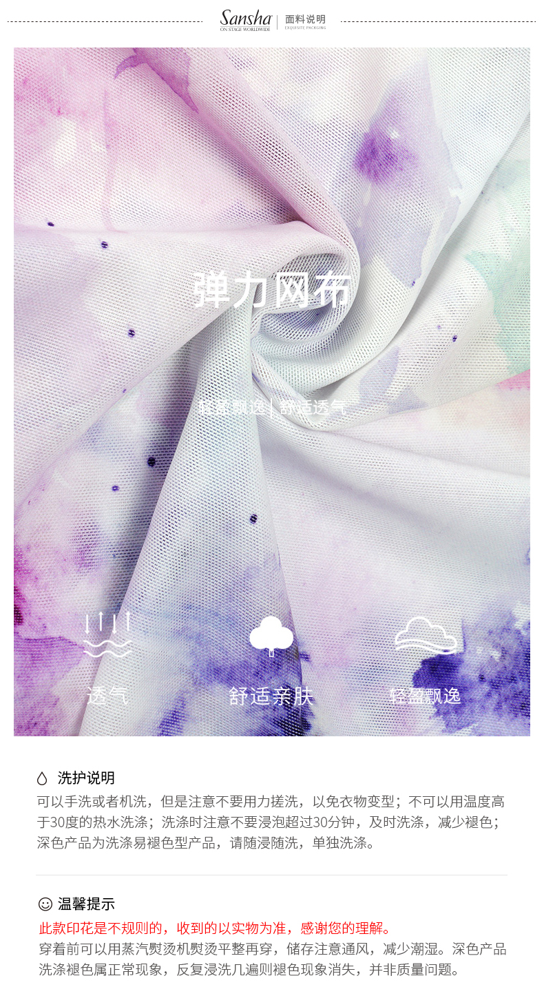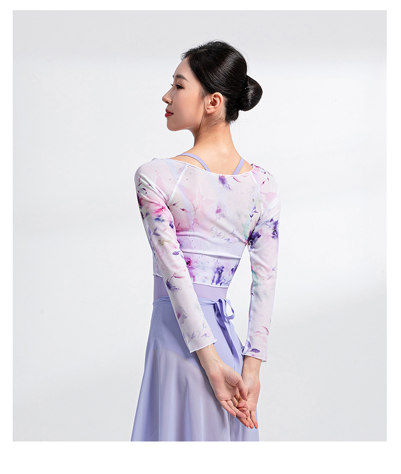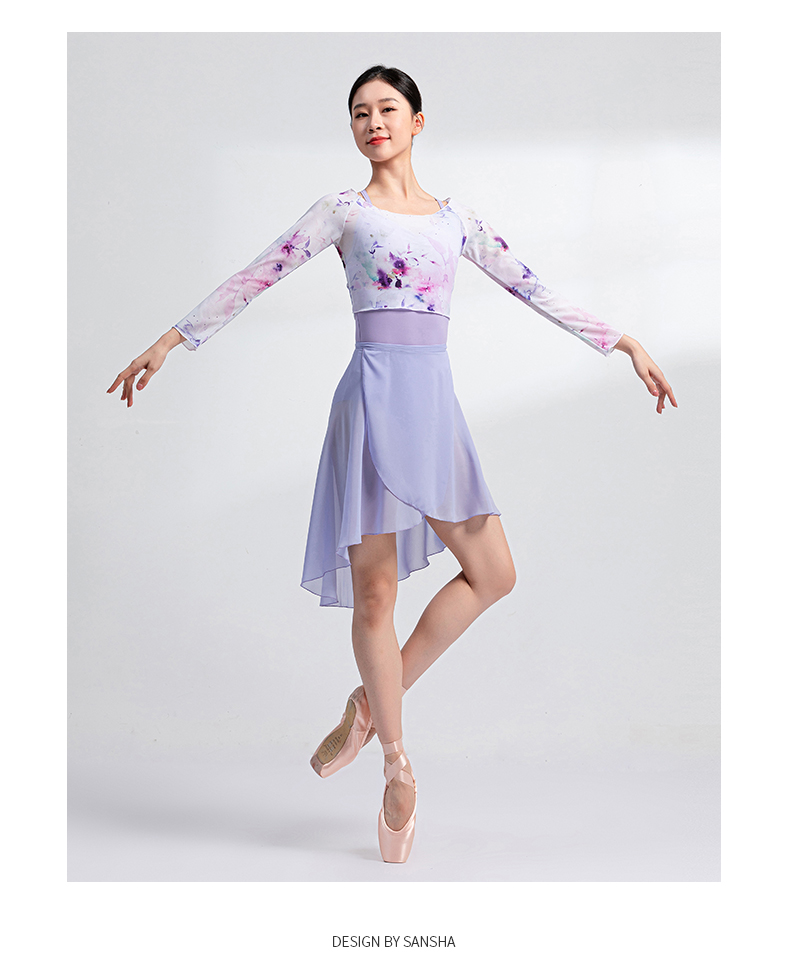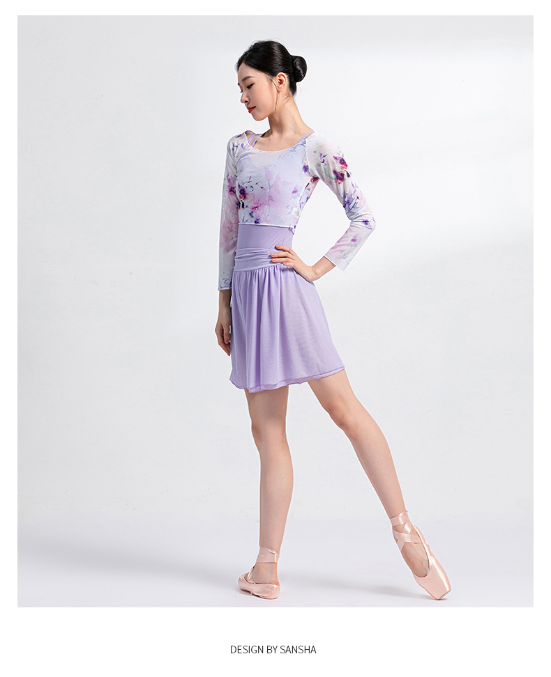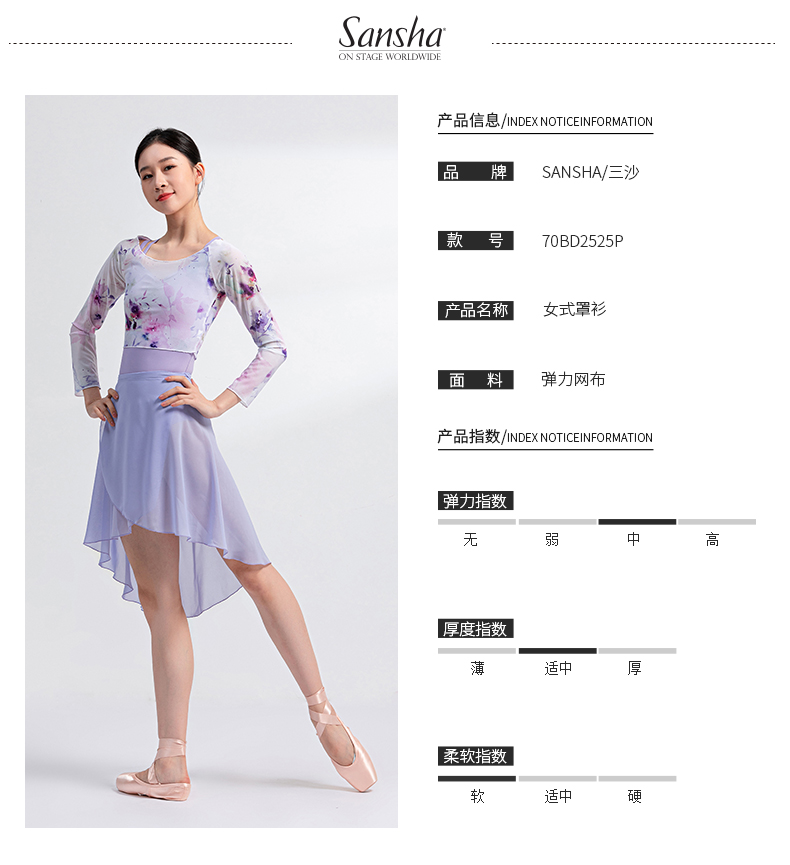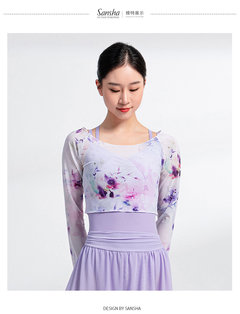 sansha 法国三沙舞蹈服上衣女 网纱芭蕾舞练功服罩衫一字领练功服
