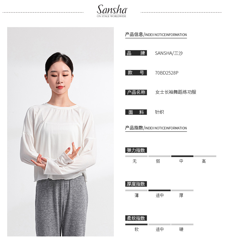 sansha 法国三沙现代舞服成人女 宽松舞蹈练功服上衣古典舞长袖T